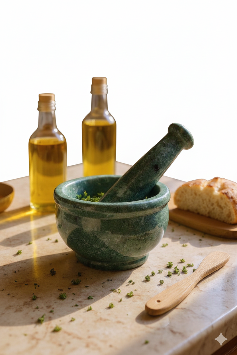 Bring traditional grinding into your modern kitchen with this beautifully handcrafted Green Marble Mortar & Pestle. Designed for both durability and elegance, this heavy-duty stone grinder effortlessly crushes spices, herbs, garlic, ginger, and Ayurvedic ingredients to release their full aroma, flavor, and natural oils.